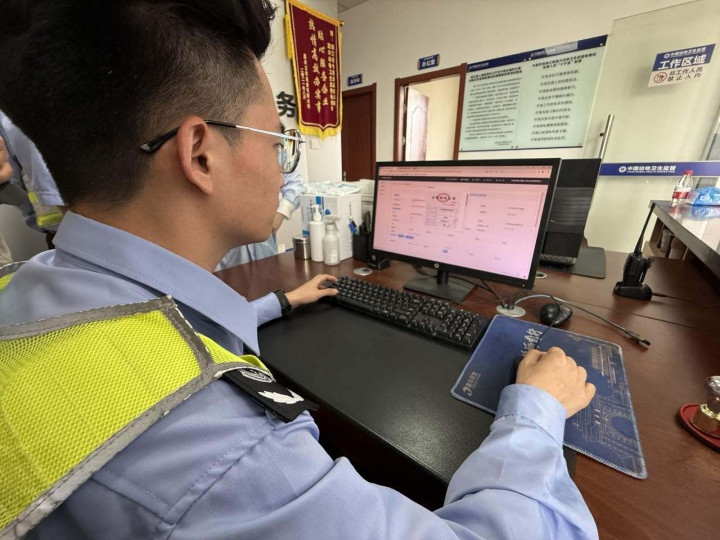 报验现场,当二维码扫描成功后,工作人员可在电脑上直接查看到与所运输产品相关的集成信息。“包括货主、品种、数量、起运及到达地,这些信息都会显示,如若出现不匹配的情况,信息栏会有红字警示。”乍嘉苏高速公路嘉兴动物防疫检查站站长顾克恩介绍。
